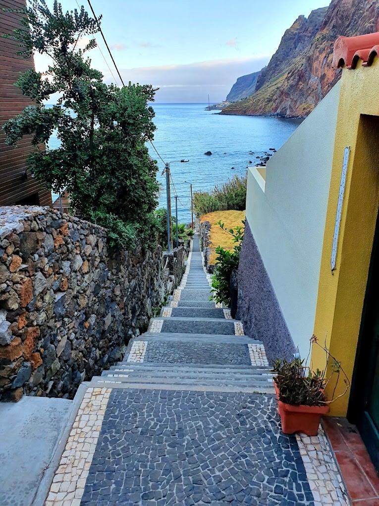 ➤ We are to our destination, Paul do Mar. Situated southwest of the island of Madeira, Paul do Mar stands out for the undeniable beauty of its surroundings and its deep-rooted fishing tradition, which mark the daily life and profile of this town to this day. It is, therefore, an unavoidable parish in the municipality of Calheta. The name of this place comes from its peculiar orography, as it resembles a valley, sheltered by imposing rocks on one side and bathed by the sea on the other. The town's proximity to the Atlantic Ocean has decisively shaped its culture and, of course, its economic activity. Paul do Mar is an important fishing centre on the island.